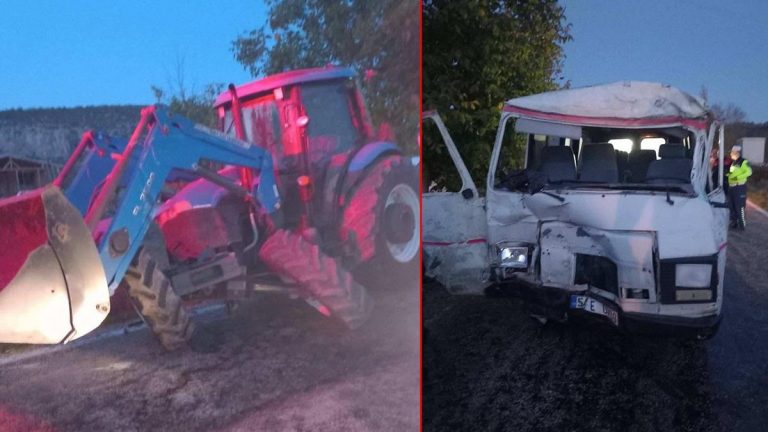 Traktör ile minibüs çarpıştı! Yaralılar var